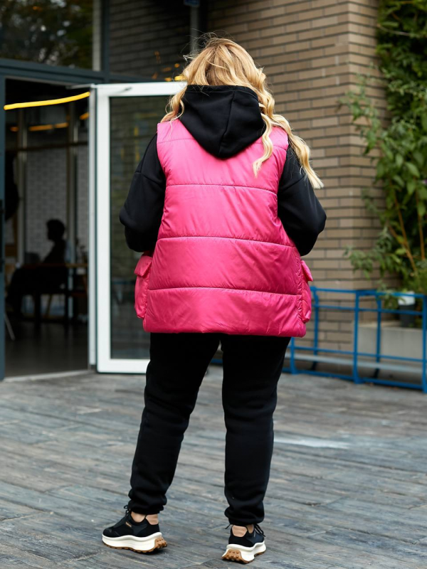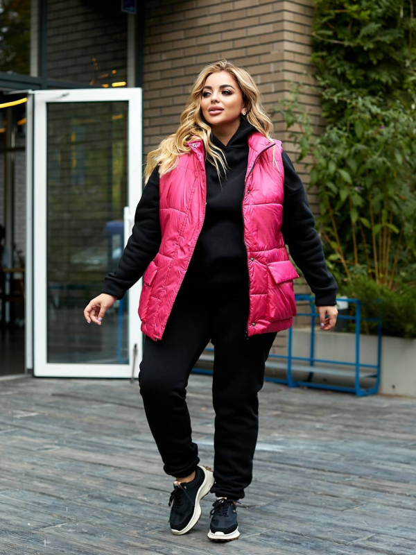 Тепленький костюм состоит из трех предметов: брюки, худи и жилет на синтепоне.