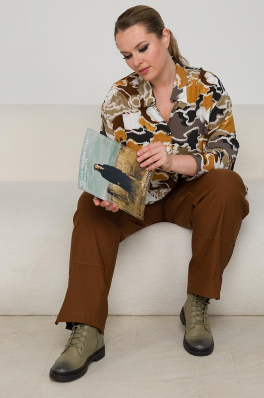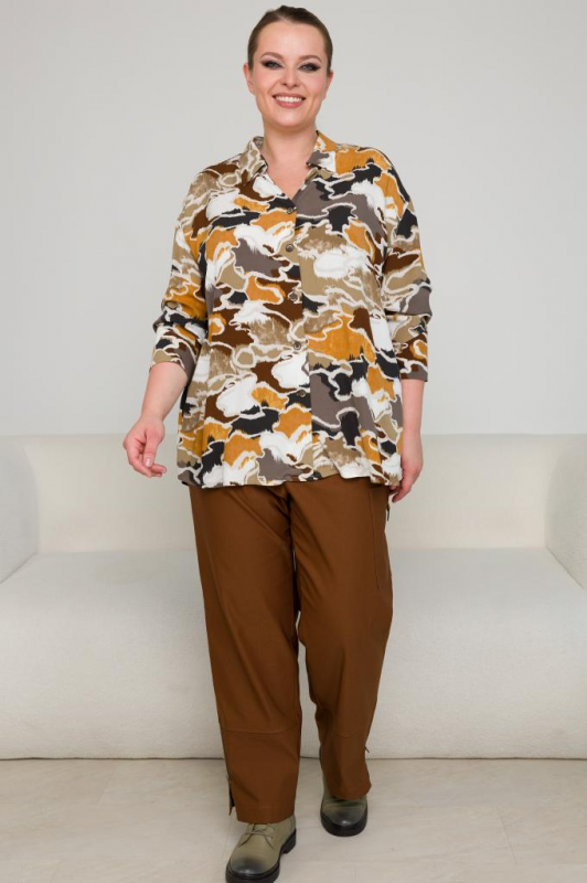 Блуза- рубашка выполнена из 100% вискоза (полированный штапель) высокого качества. Ткань не хлипкая, приятная, не эластичная,.
