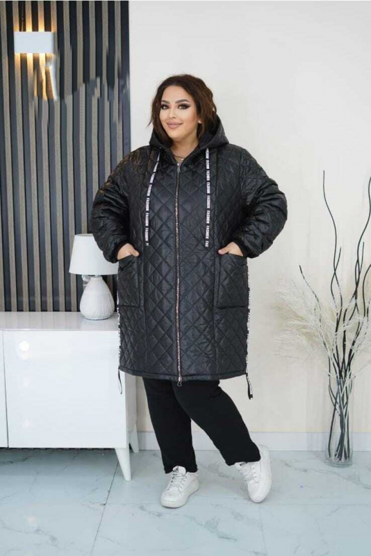 Стильная, удлиненная демисезонная куртка выполнена из курточной стежки. Слежка шуршит,  утеплитель синтепон.