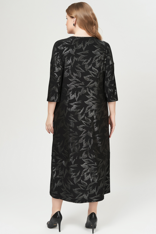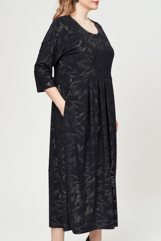 Нарядное платье из струящегося трикотажа - масло с блестящим принтом.