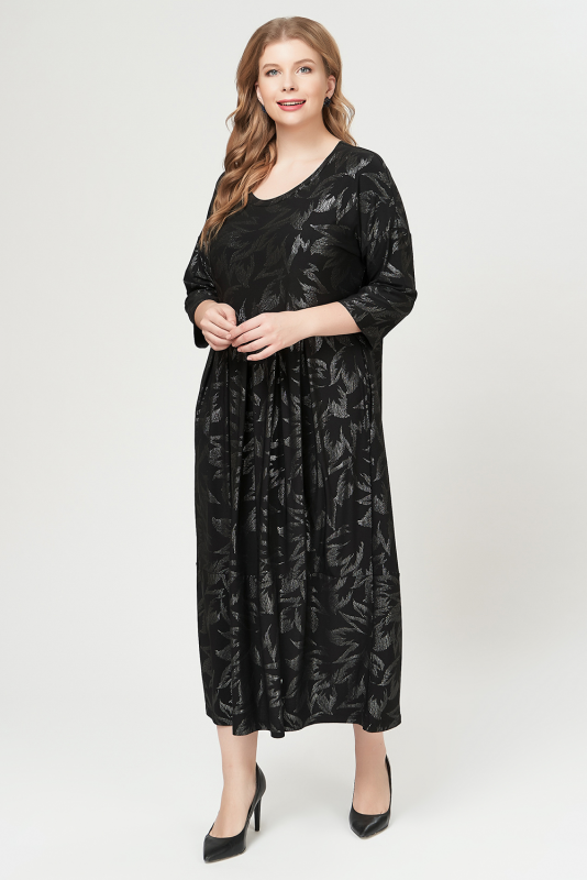 Нарядное платье из струящегося трикотажа - масло с блестящим принтом.