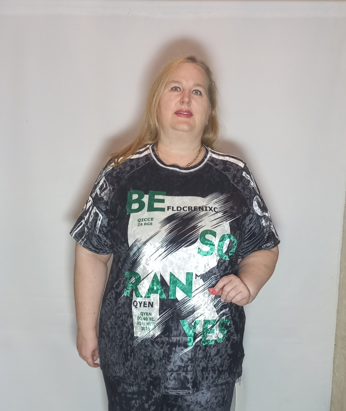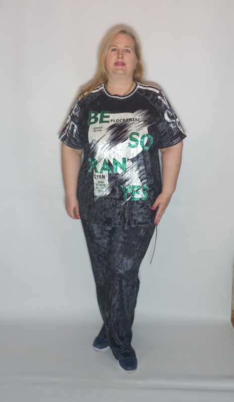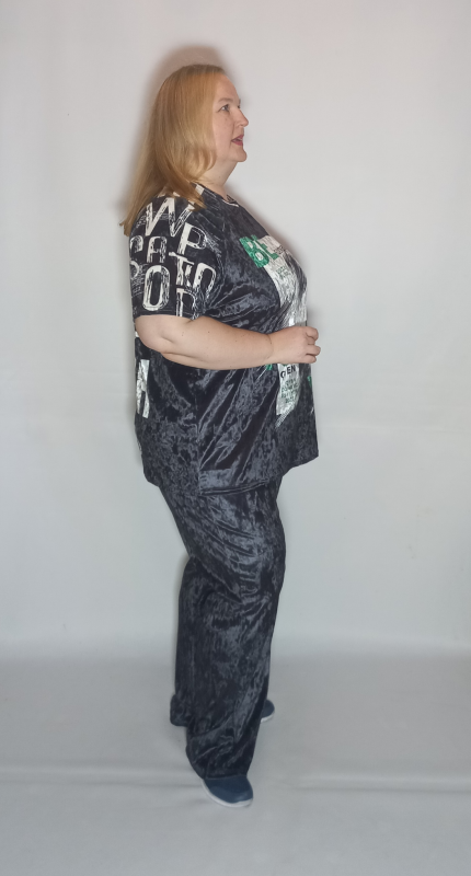 Шикарная  туника- футболка выполнена из мягкого, очень эластичного мраморного велюра с рисунком.