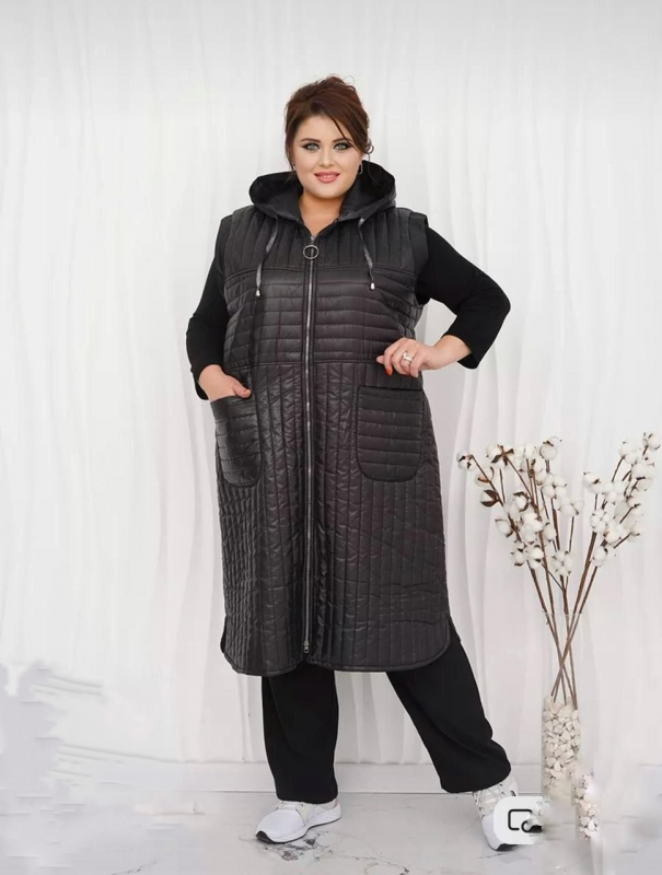 Стильный, удлиненный жилет выполнен из курточной стежки, на подкладе. Стежка красивая, шуршит мало.